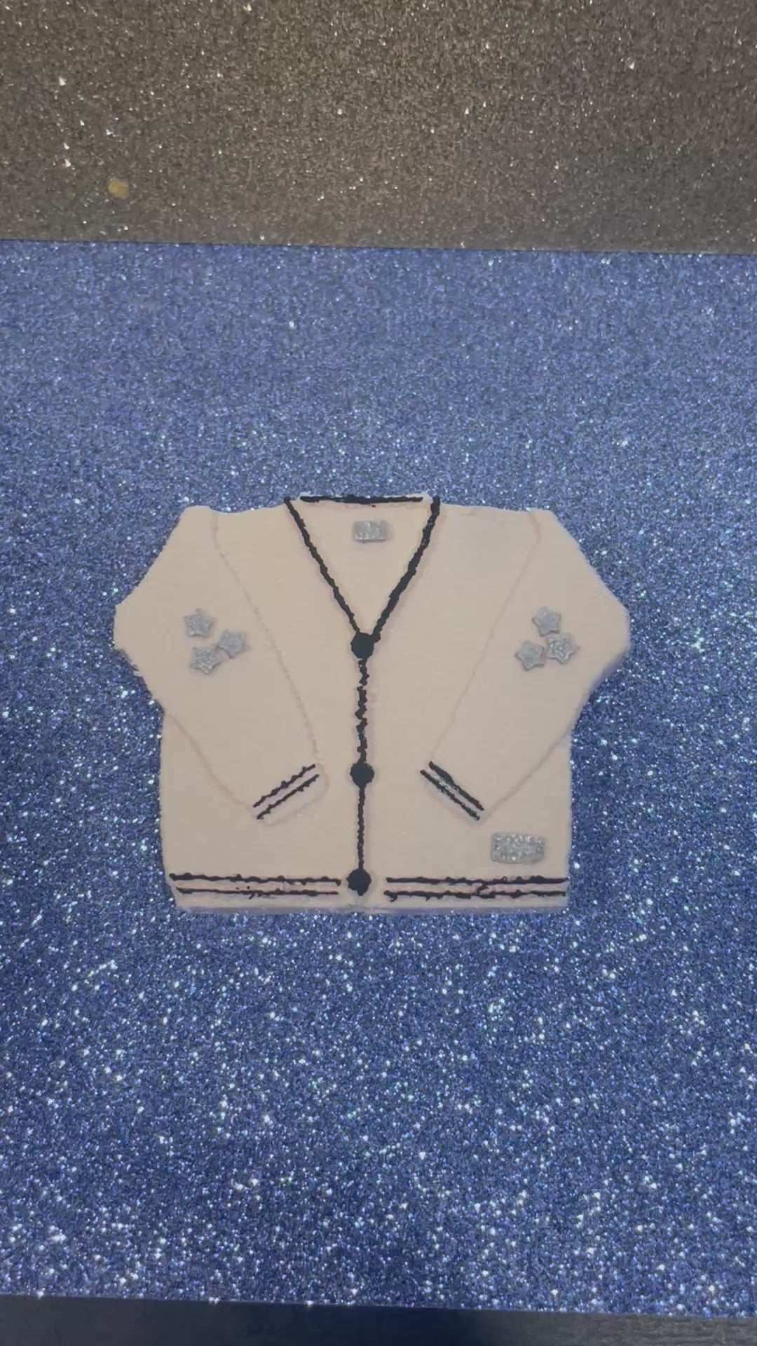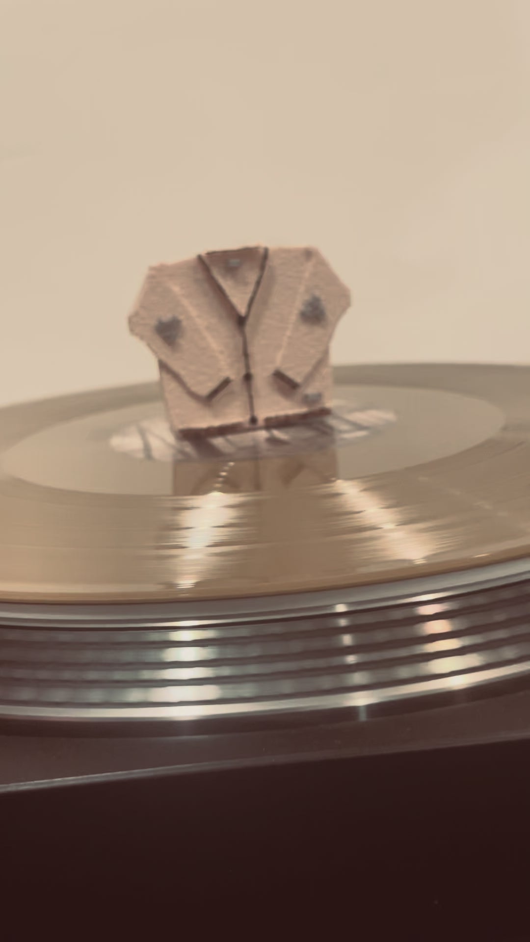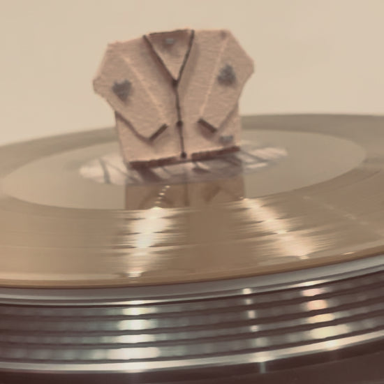 Grab our cardigan charm! They are 3D printed, lightweight but sturdy. They will not move on the record and are light enough to not cause balance issues. Material looks like a cardigan fabric Black outlines are hand painted.