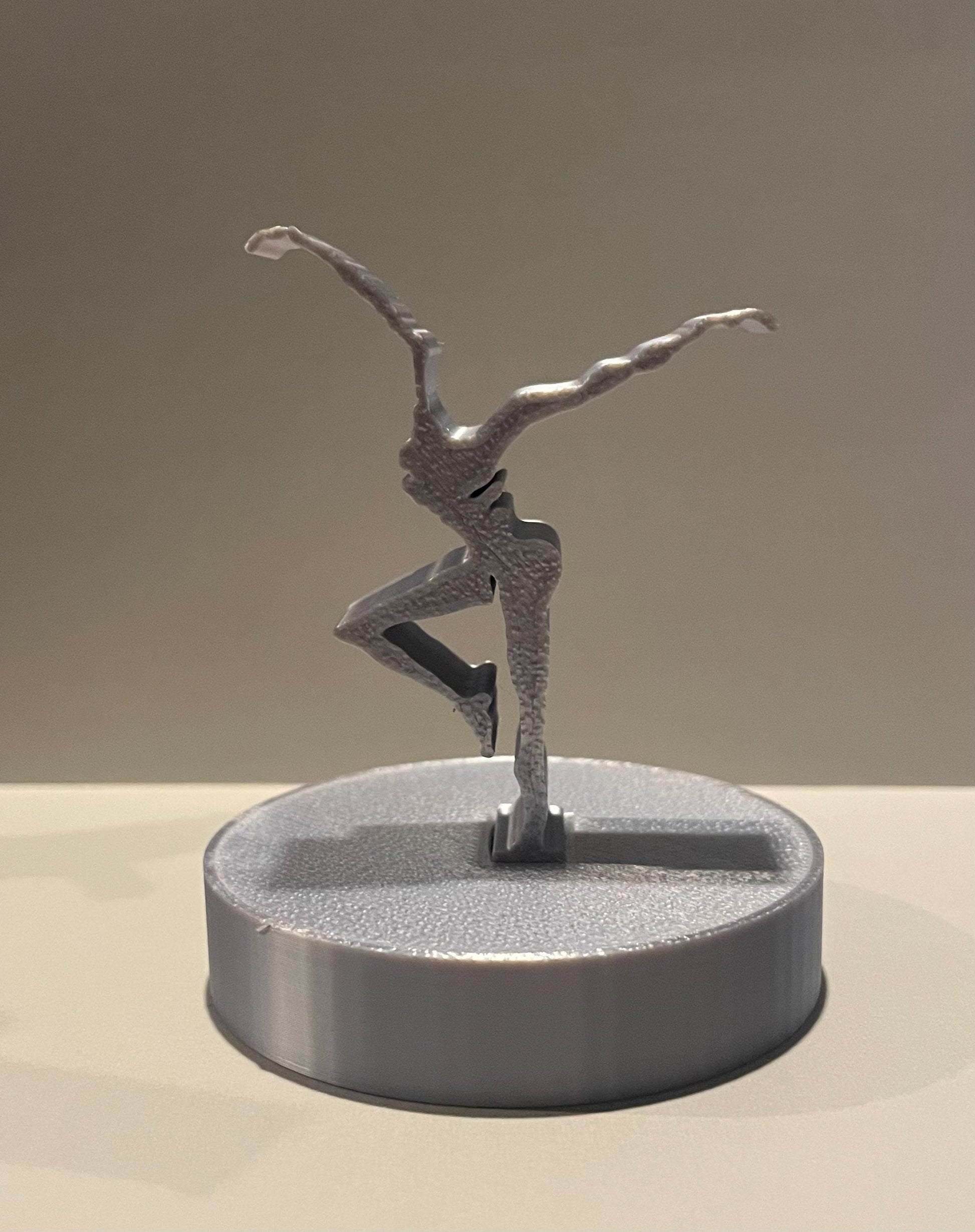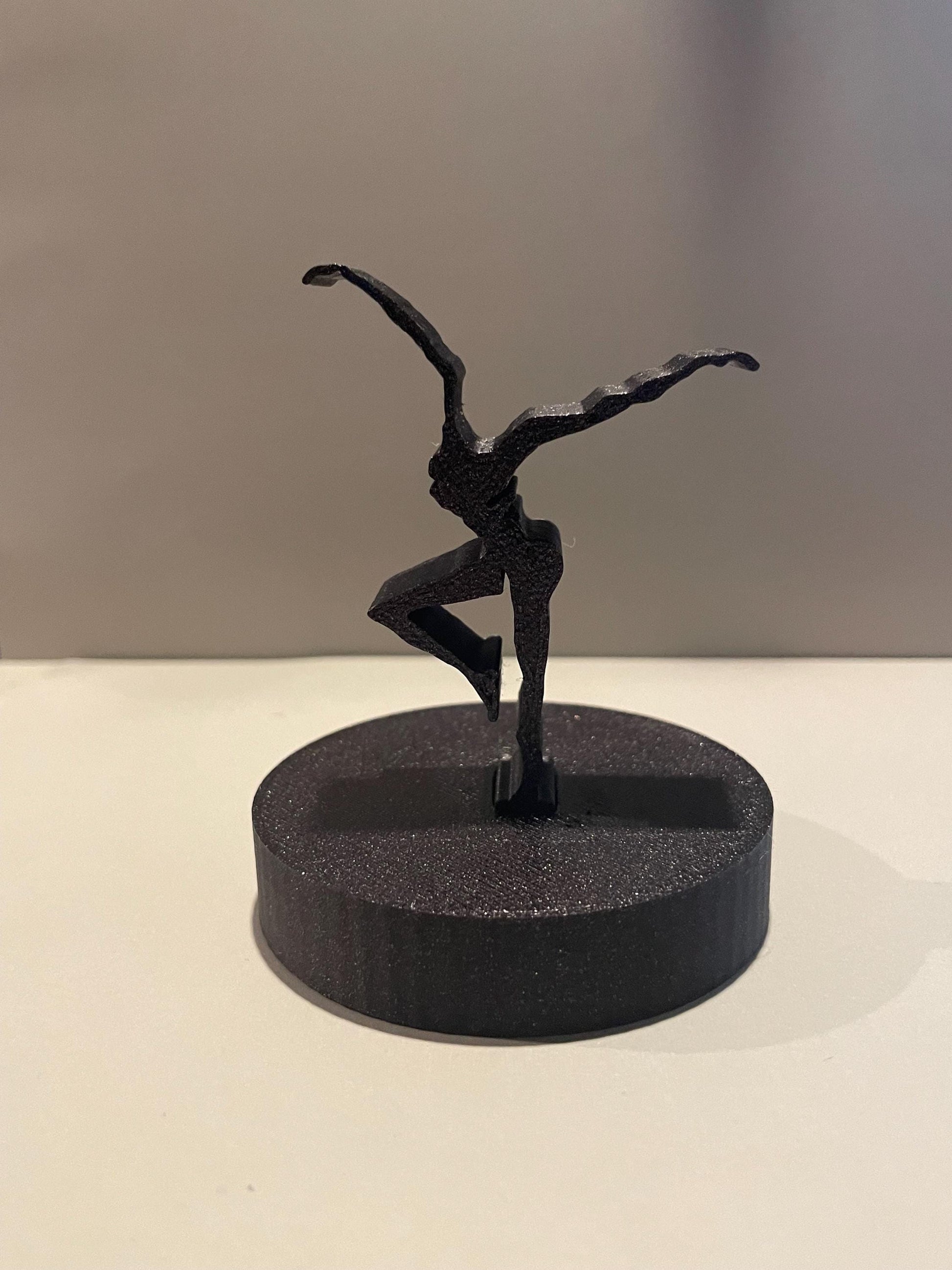 Fire dancer comes on a circular base with hole on bottom. It measures 2.85” high x 2.6” wide.
