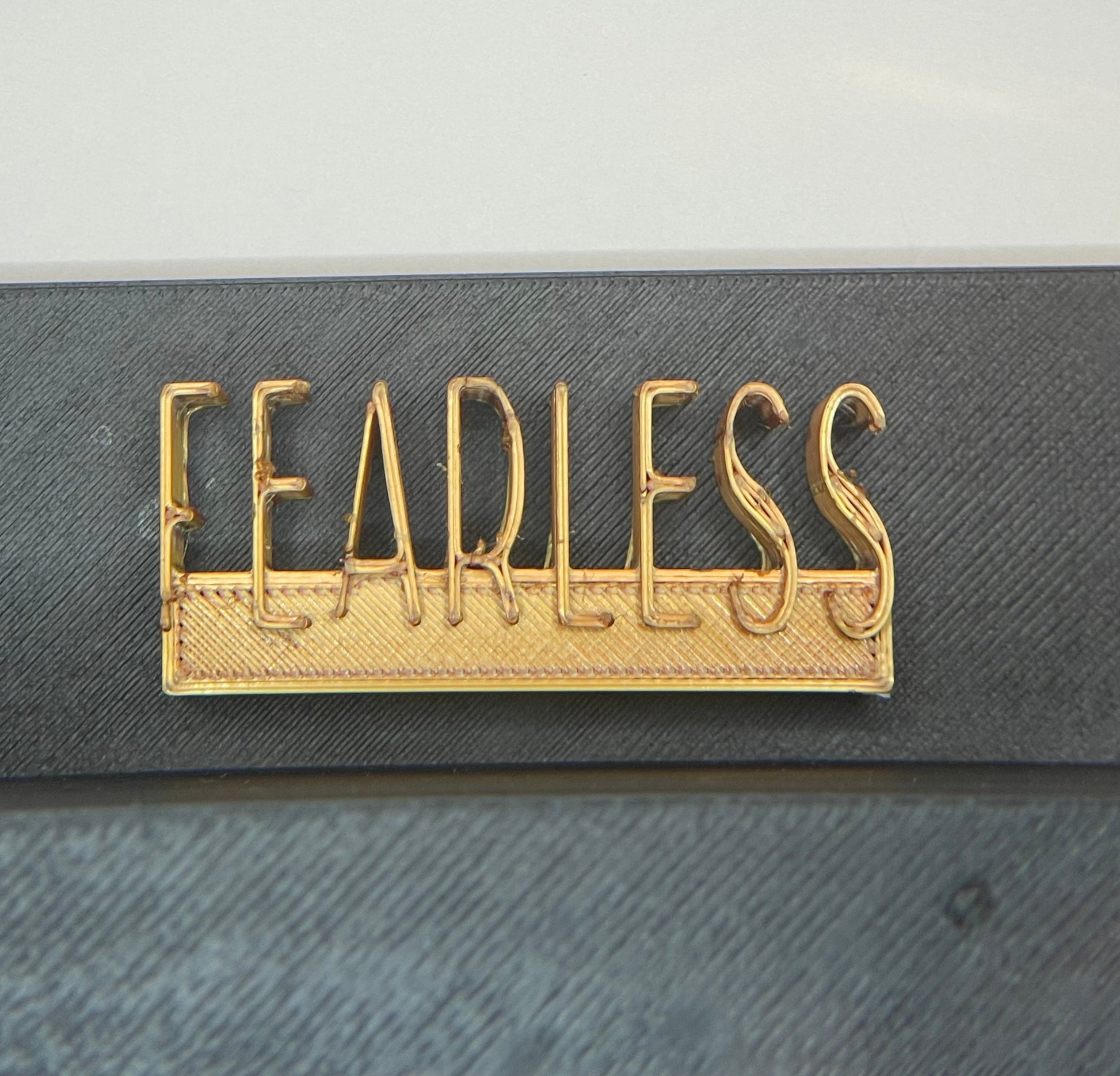 Fearless measures 2” wide by 0.8” tall by 0.5” deep. Listed in our gold/copper silk and white colors, but more colors may be added. Reach out if you have a special color request!