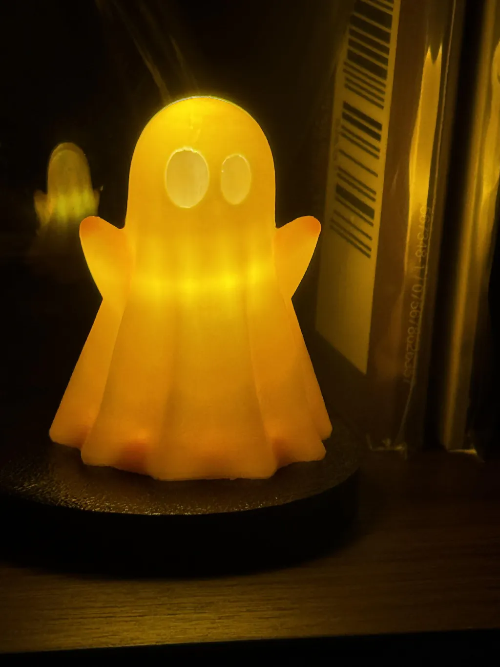 Ghosts are 2.3” tall x 1.75” wide. They come with a base that is 2.66” around and a bulb for inside. Extra bulbs are also available.