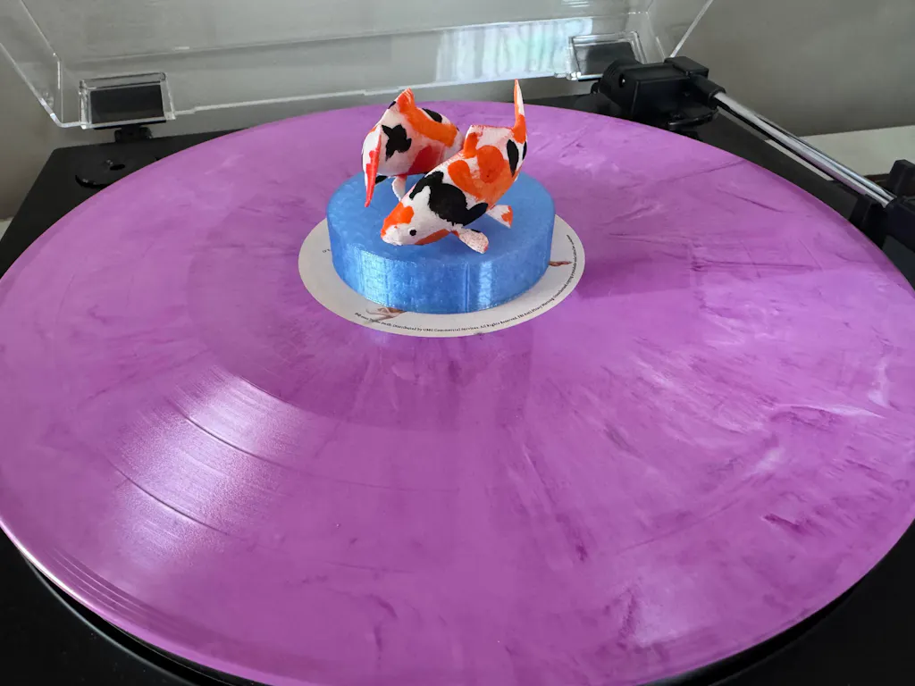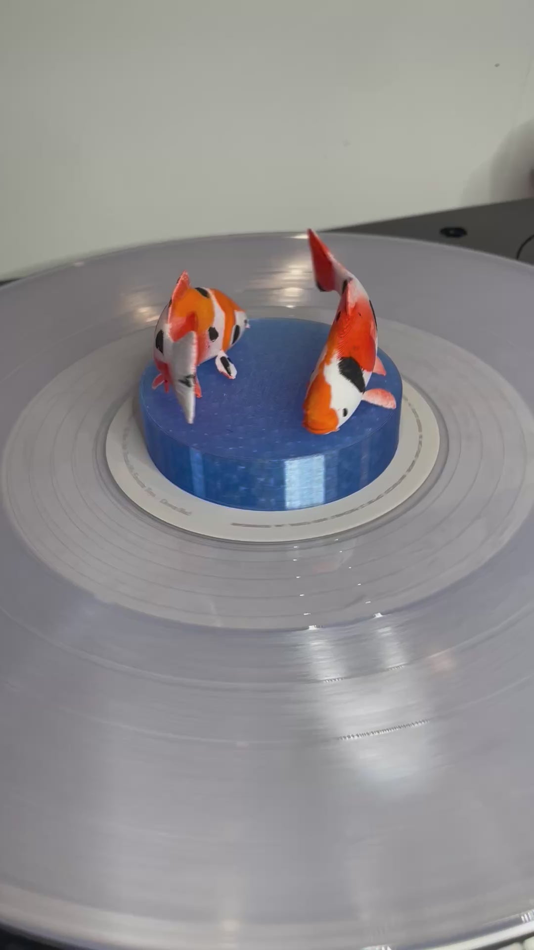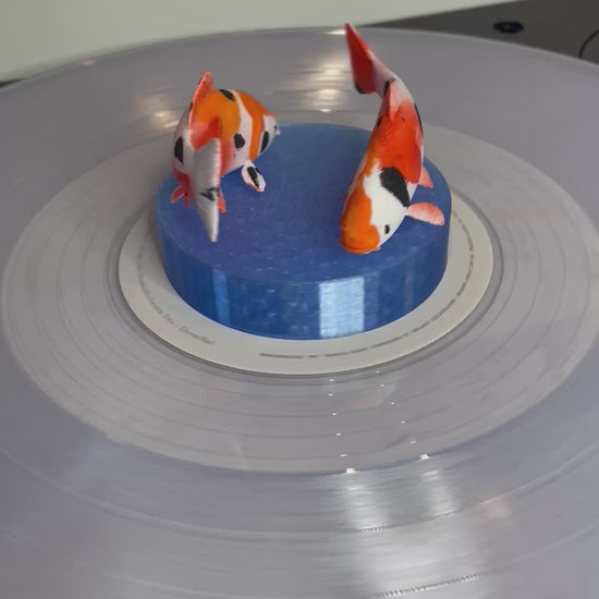 Koi fish measure ~3” long by 1.4” tall by 1.4” wide. They sit on your vinyl player or label. Or add a pond to hold them!