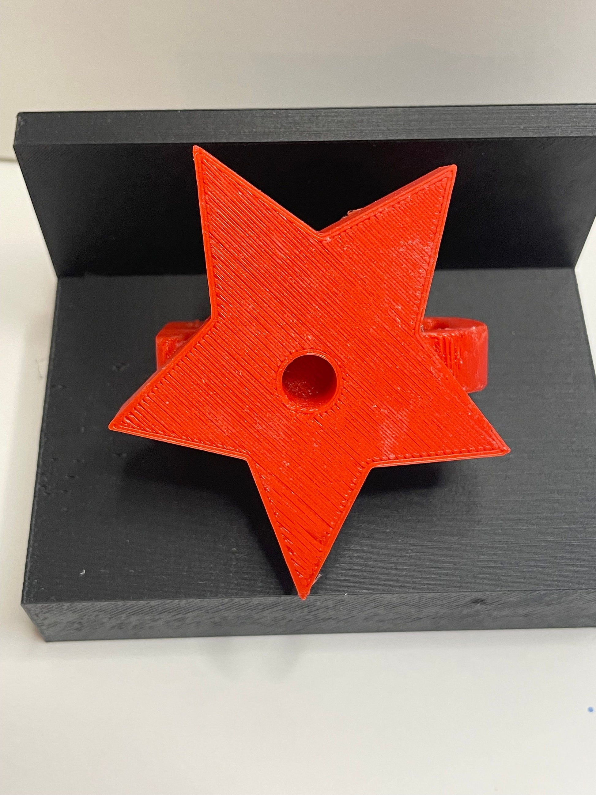 RED is star shaped and measures 2.7” at its widest by 1.5” tall. It also has a hole in the bottom to fit directly on the center of your player.