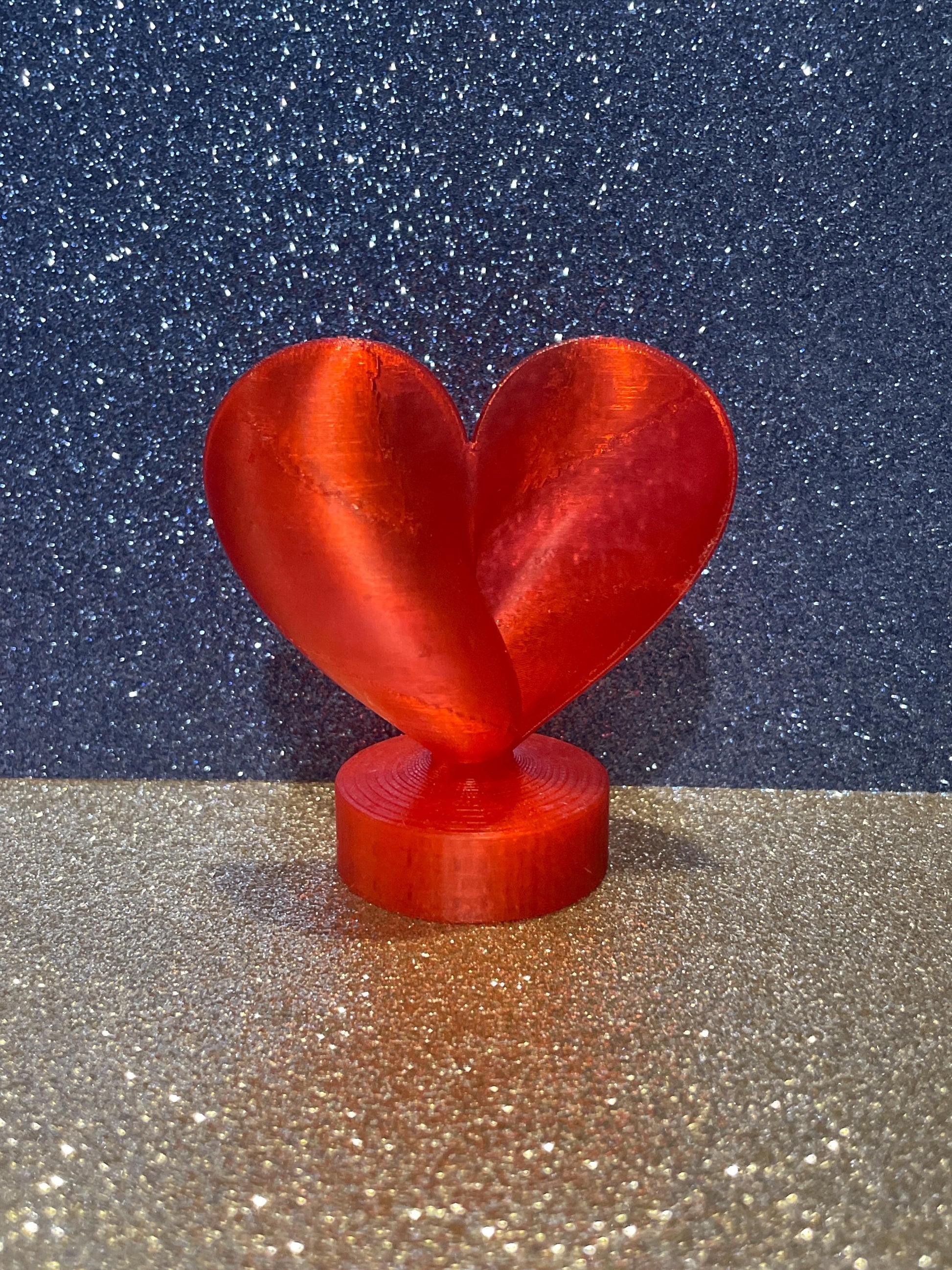 Heart measures 3" tall x 2.85”wide (base and depth are 1.6”). Hole on the bottom for spinning on your vinyl or standing up as a decoration.