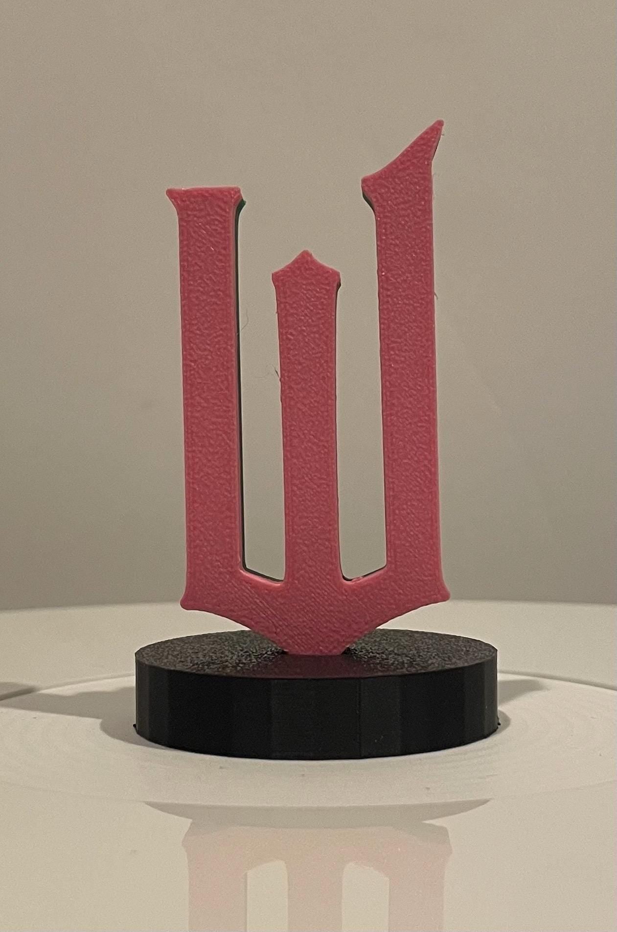 The W charm is 3.3” tall and 2" wide on a circle base. It weighs 0.6 ounces.